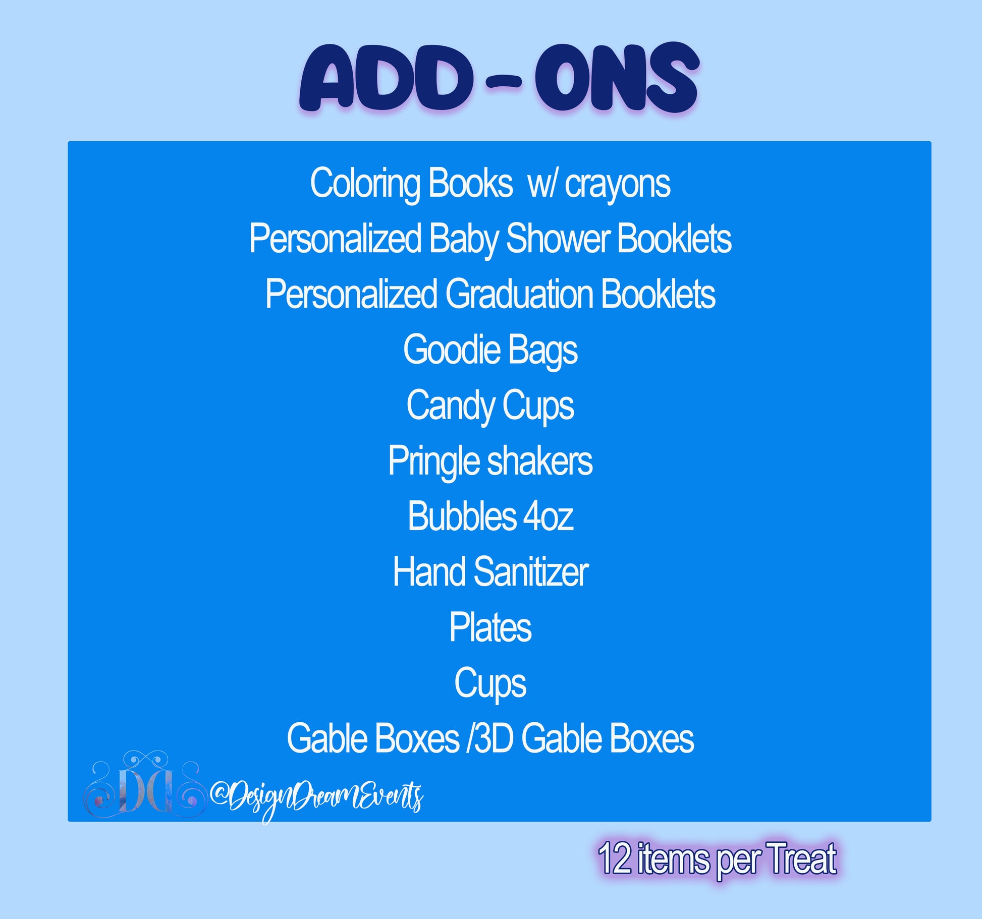 Unleash your creativity with Add-On’s! These customizable party favors are the perfect way to add a personal touch to any event. Want more fun and unique party favors? Add-On’s has got you covered. Elevate your parties with our one-of-a-kind add-ons.